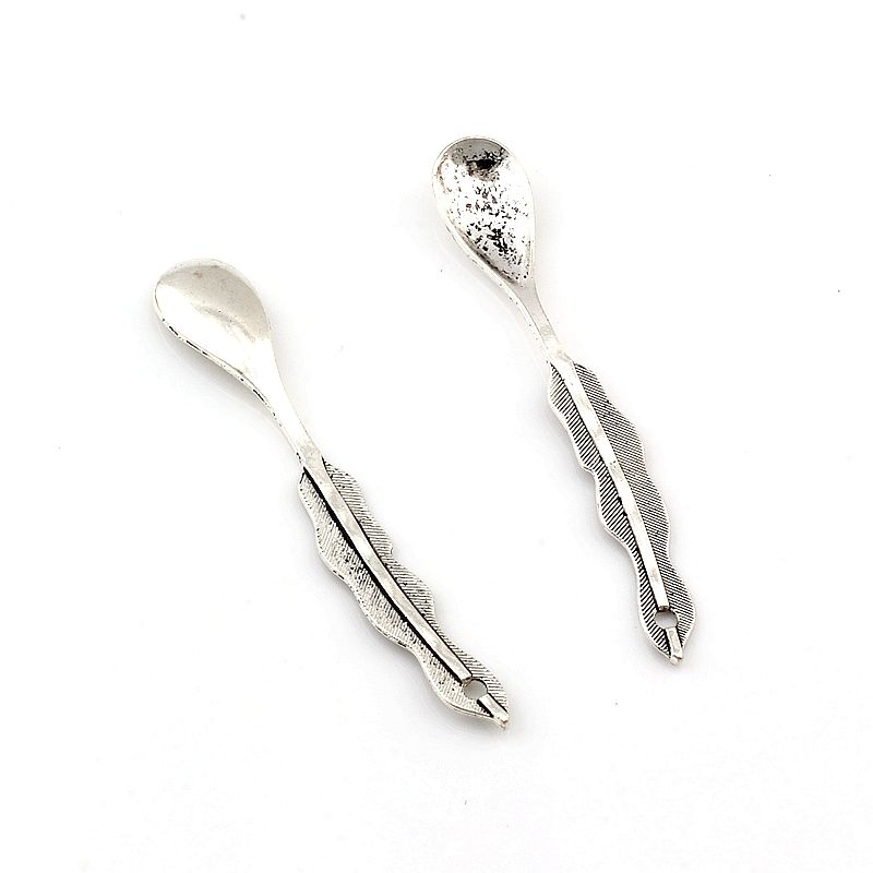 2020 Antique Silver Alloy Feather Tea Spoon Pendants Fashion Diy