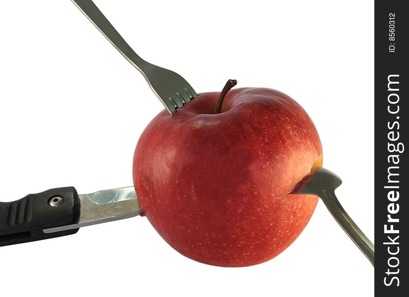 Red Apple With Knife Spoon And Fork Free Stock Images Photos