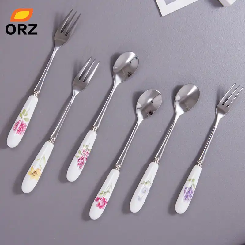 Orz 6 Pcs Cutlery Tableware Set With Gift Box Ceramic Fruit Cake