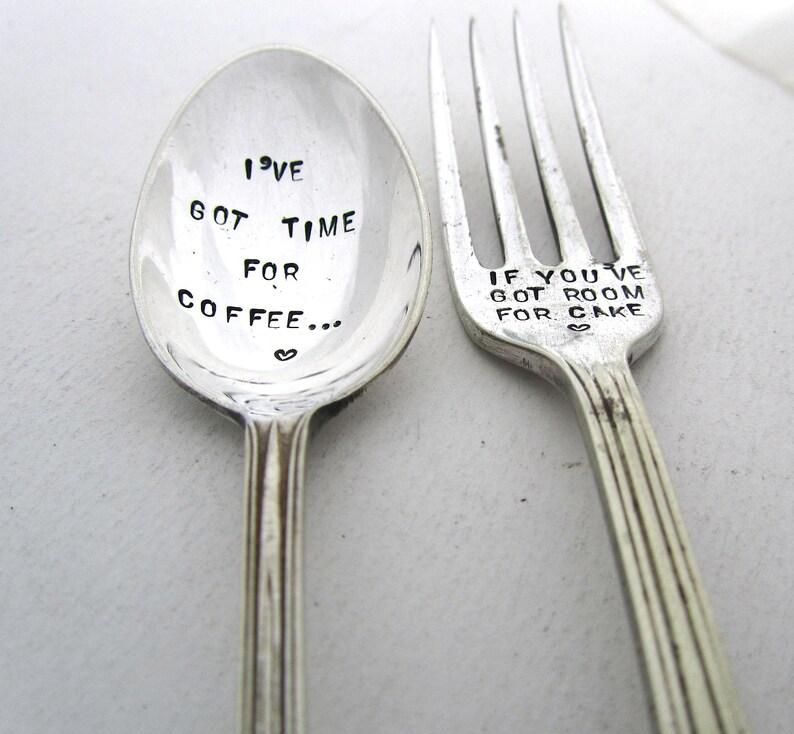 Coffee Spoon And Cake Fork Matching Handstamped Cutlery Set Etsy