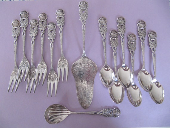 Complete Dessert Coffee Set 6 Spoons 6 Cake Forks Pie Etsy