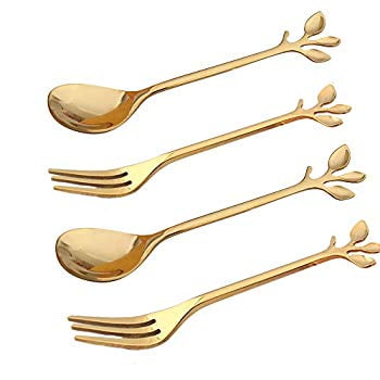 Gold Leaf Espresso Coffee Spoon Appetizer Dessert Fork Ice Cream