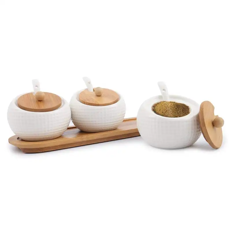 Porcelain Condiment Container Spice Jar With Lids Bamboo Cap