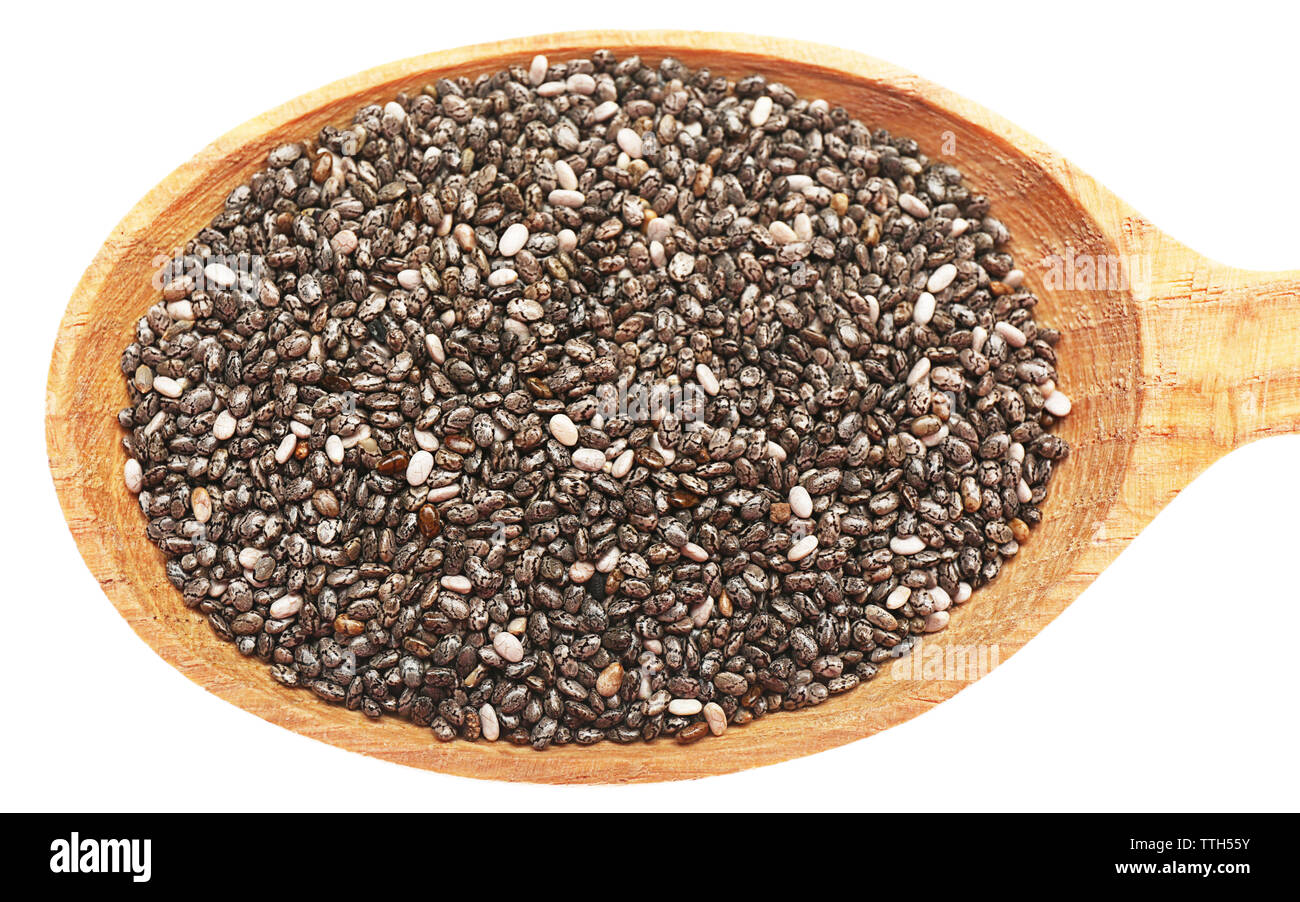 Chia Seeds In Wood Spoon Isolated On White Background Stock Photo