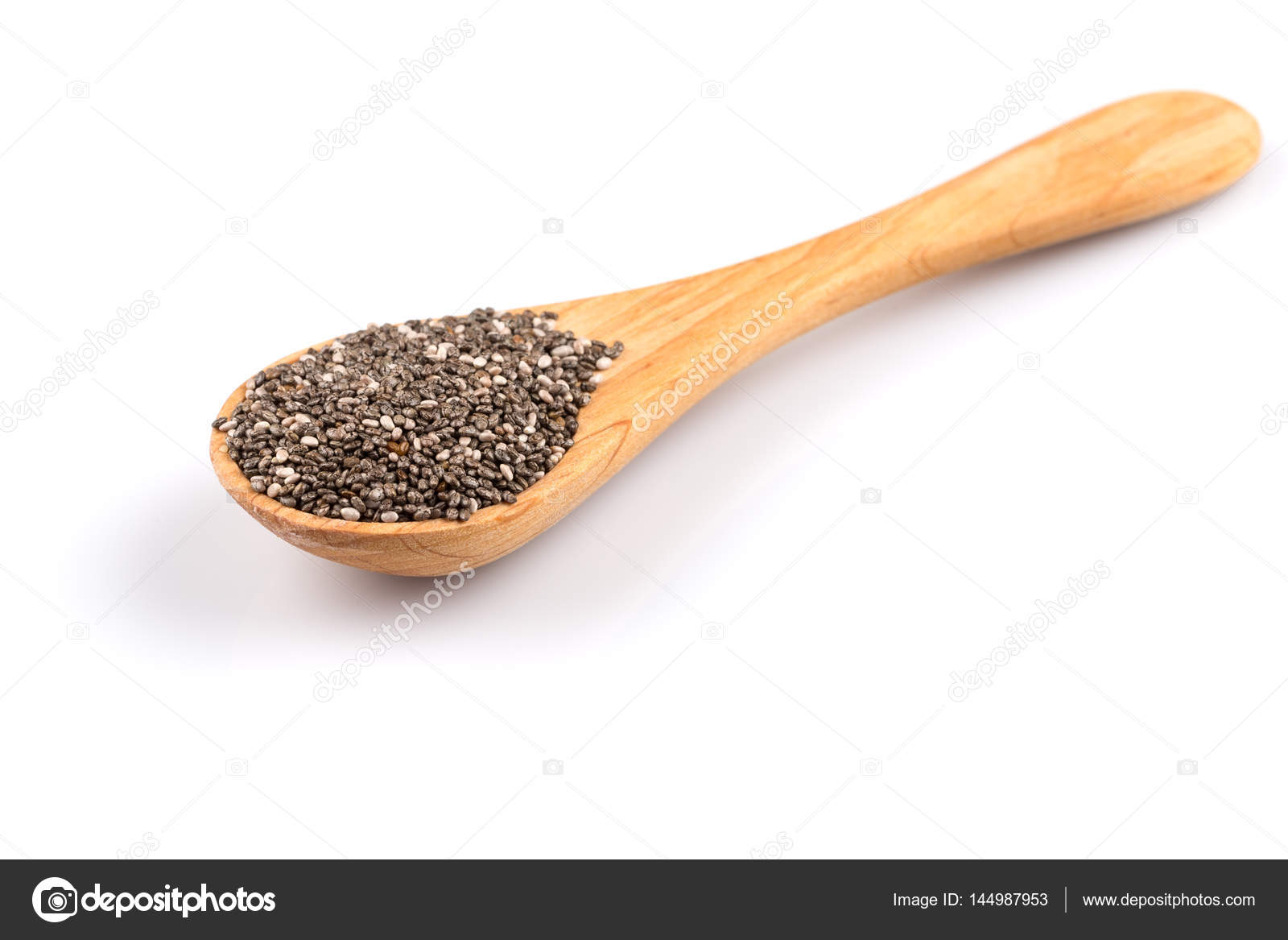 Chia Seeds In Wooden Spoon Isolated On White Stock Photo Picture
