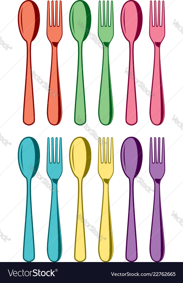 Colorful Set Of Plastic Spoons And Fork Icons Vector Image