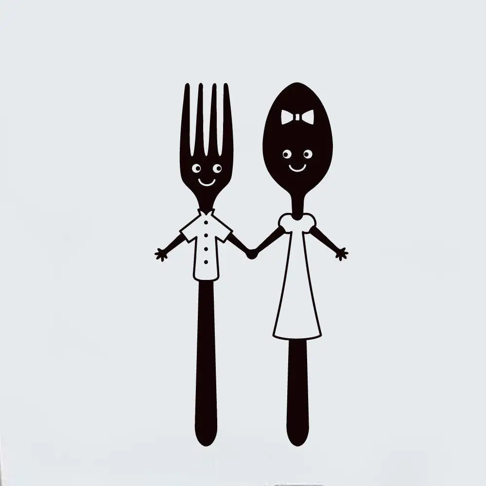 Dining Cutlery Cute Spoon Fork Design Vinyl Mural Art Wall Sticker