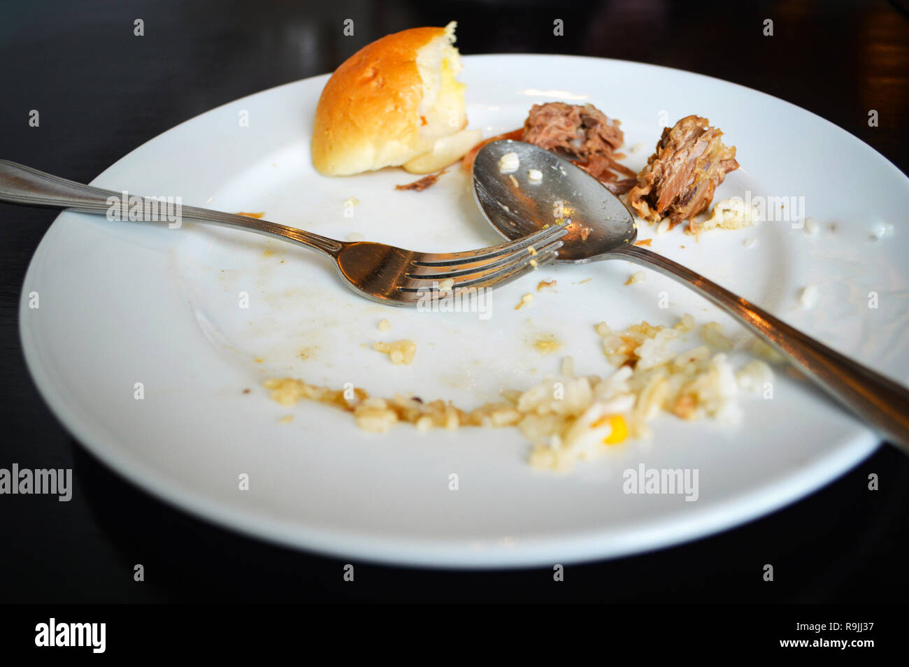 Empty Plate Dirty After The Meal Is Finished Breakfast After Eating Food White Plate With Fork And Spoon Stock Photo Alamy