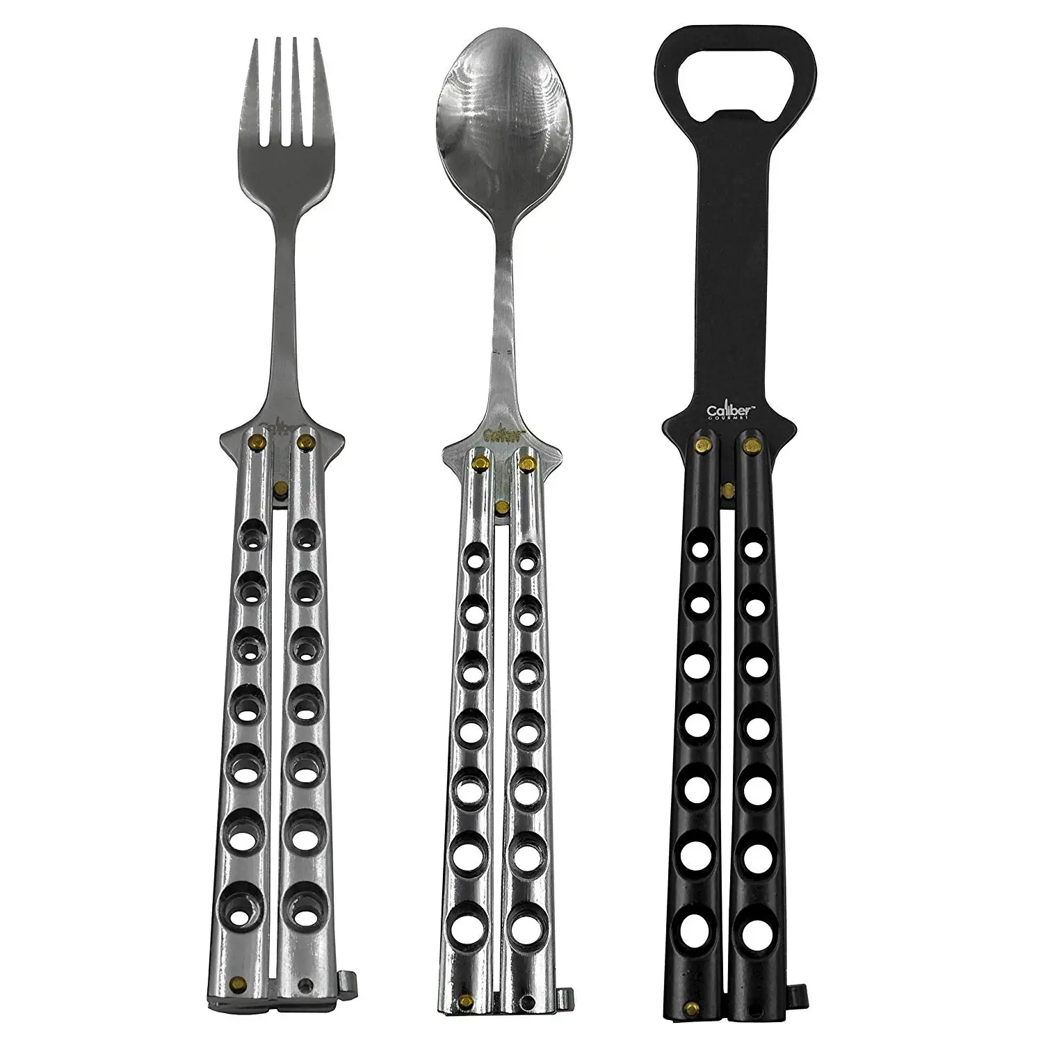 Multi Function Durable 3 In 1 Outdoor Folding Spoon Knife Travel