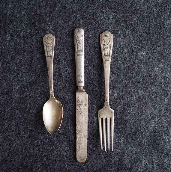Silverplate Baby Spoon Fork And Knife Set Clowns Imperial Etsy