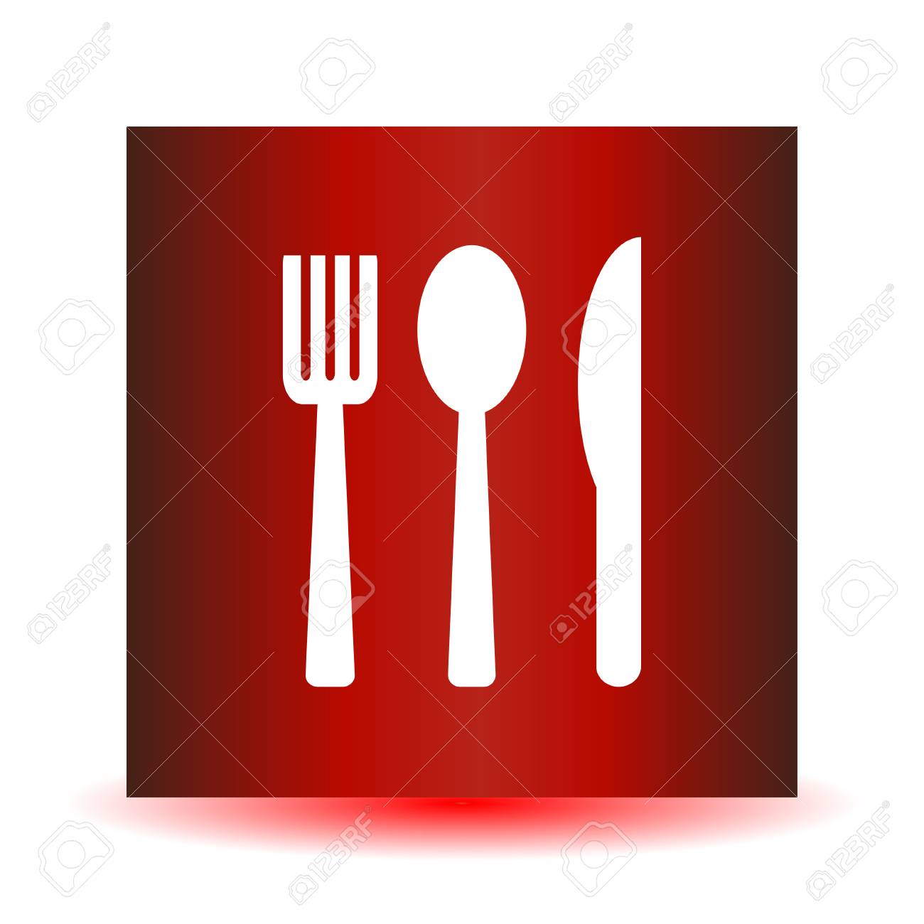Icon Fork Spoon Knife On A Red Background Vector Illustration