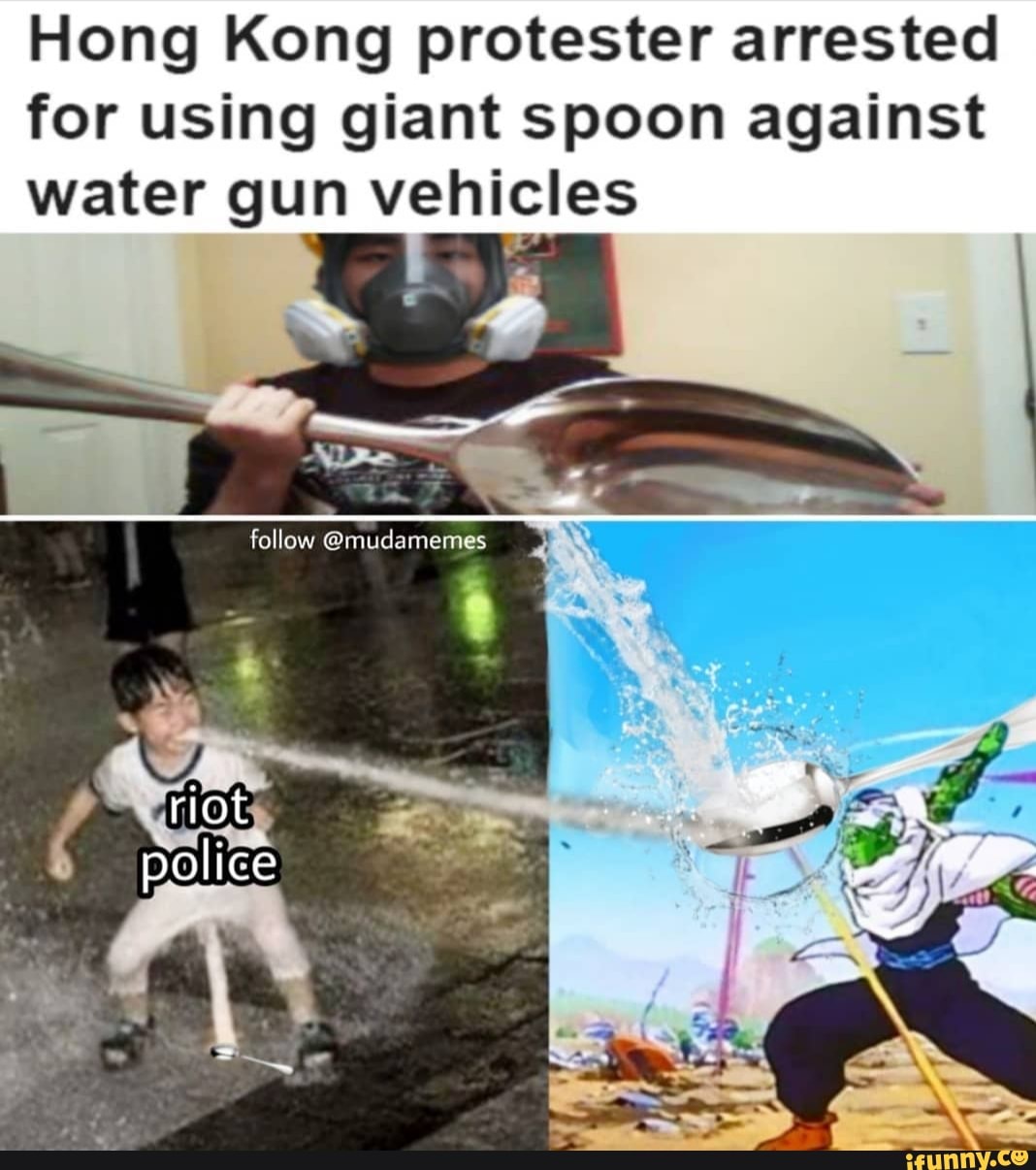 Hong Kong Protester Arrested For Using Giant Spoon Against Water