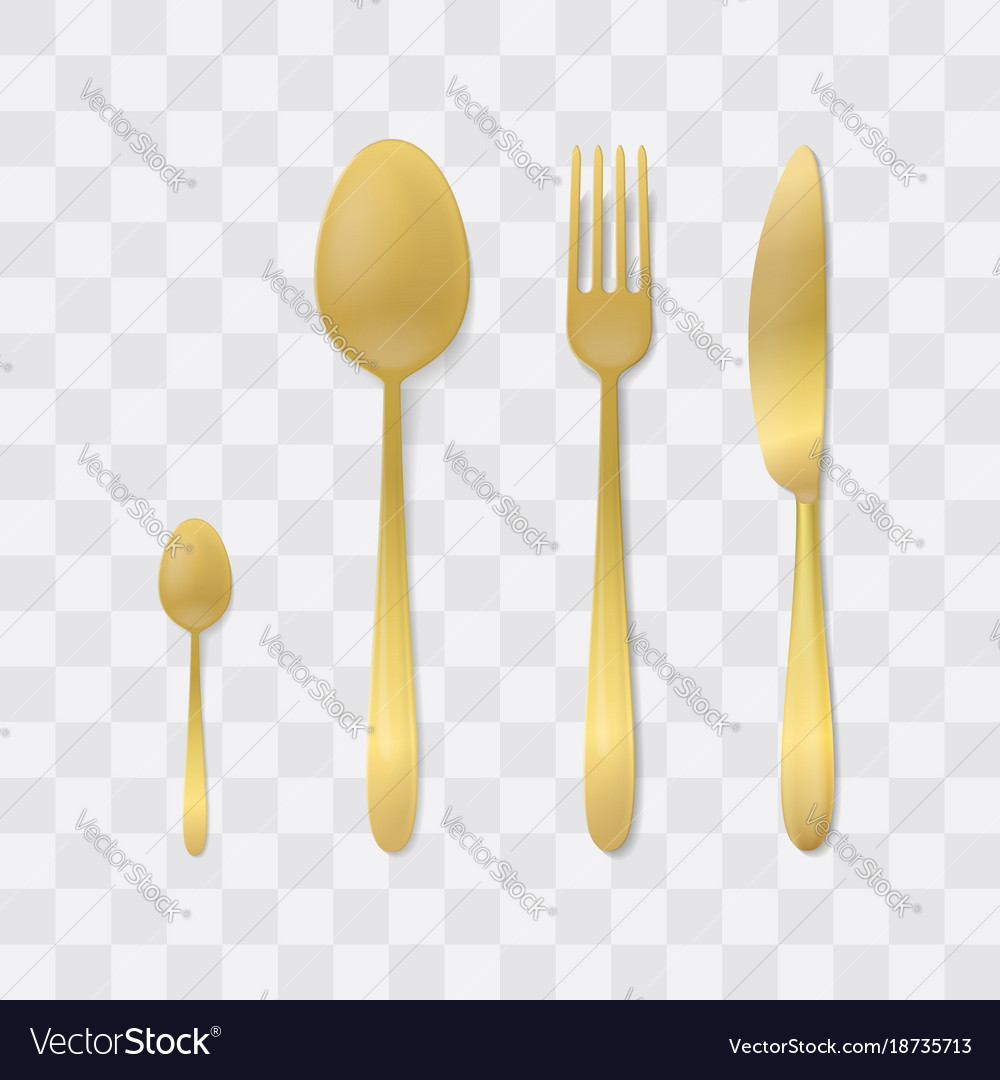 Spoon Fork And Knife Gold Set Royalty Free Vector Image