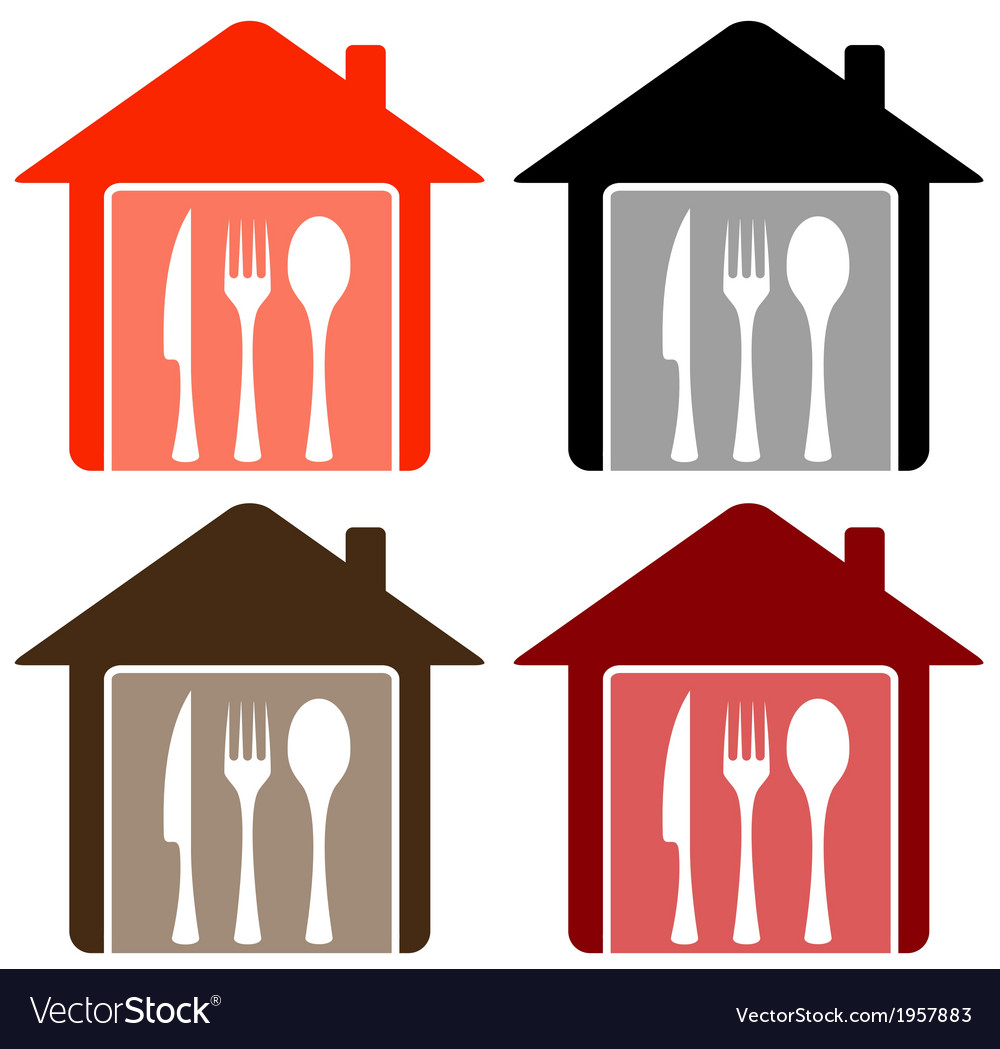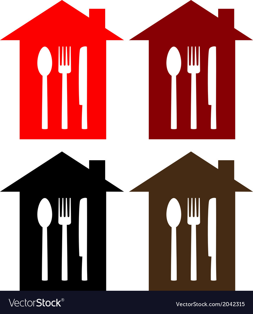 Spoon Fork Restaurant House Logo Vector Royalty Free Cliparts