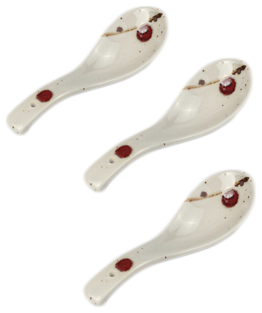 Japanese Ceramic Soup Spoons Plum Blossom Set Of 3