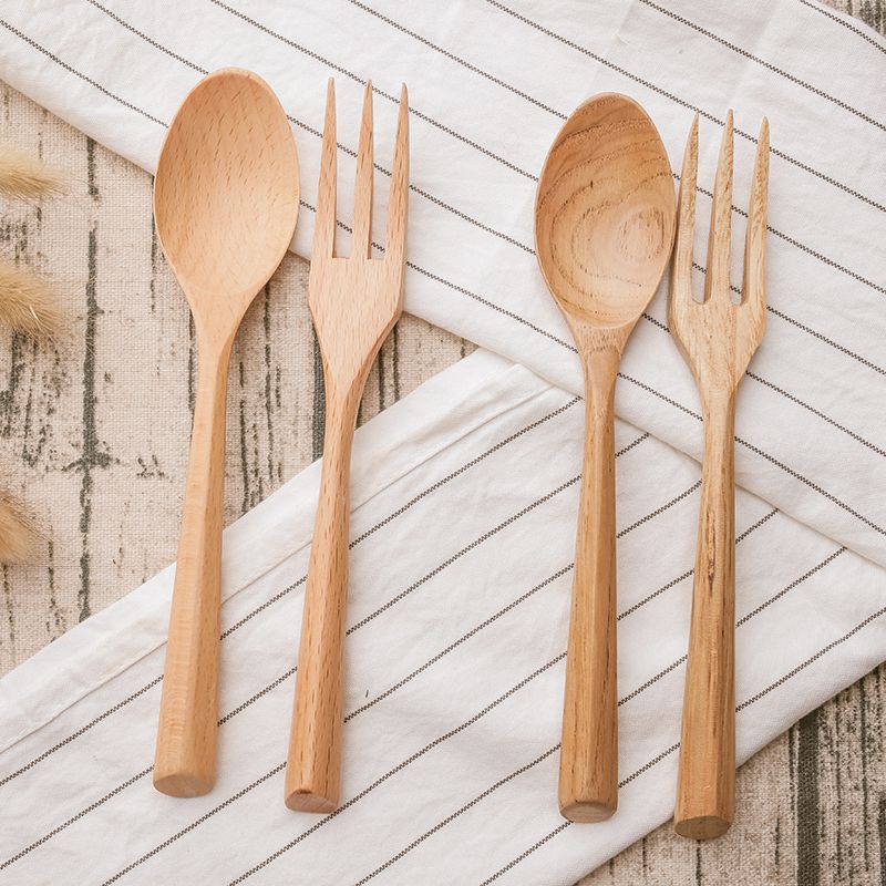 2020 Natural Wood Spoon Fork Set Japanese Style Dessert Fork