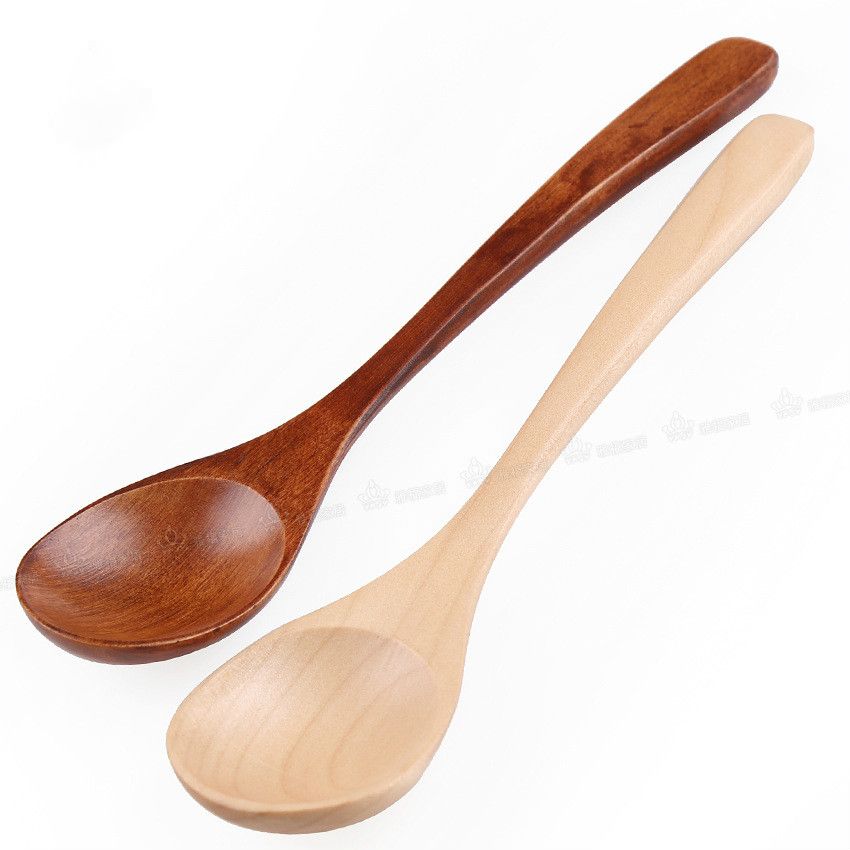 2pcs Wooden Spoons Small Wood Coffee Dessert Spoon Teaspoon