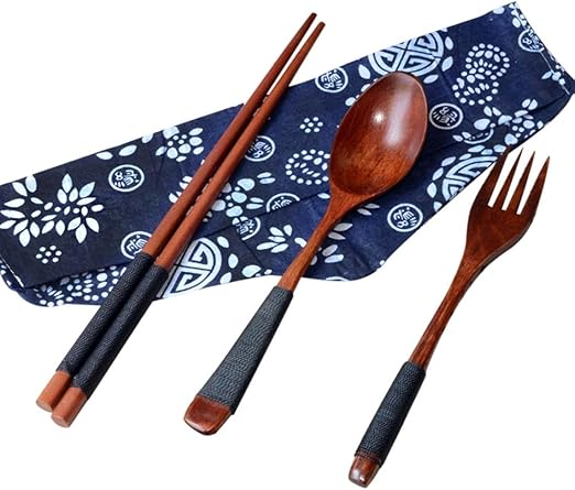 3 Piece Set Bamboo Flatware Japanese Wooden Spoon Chopstick Fork