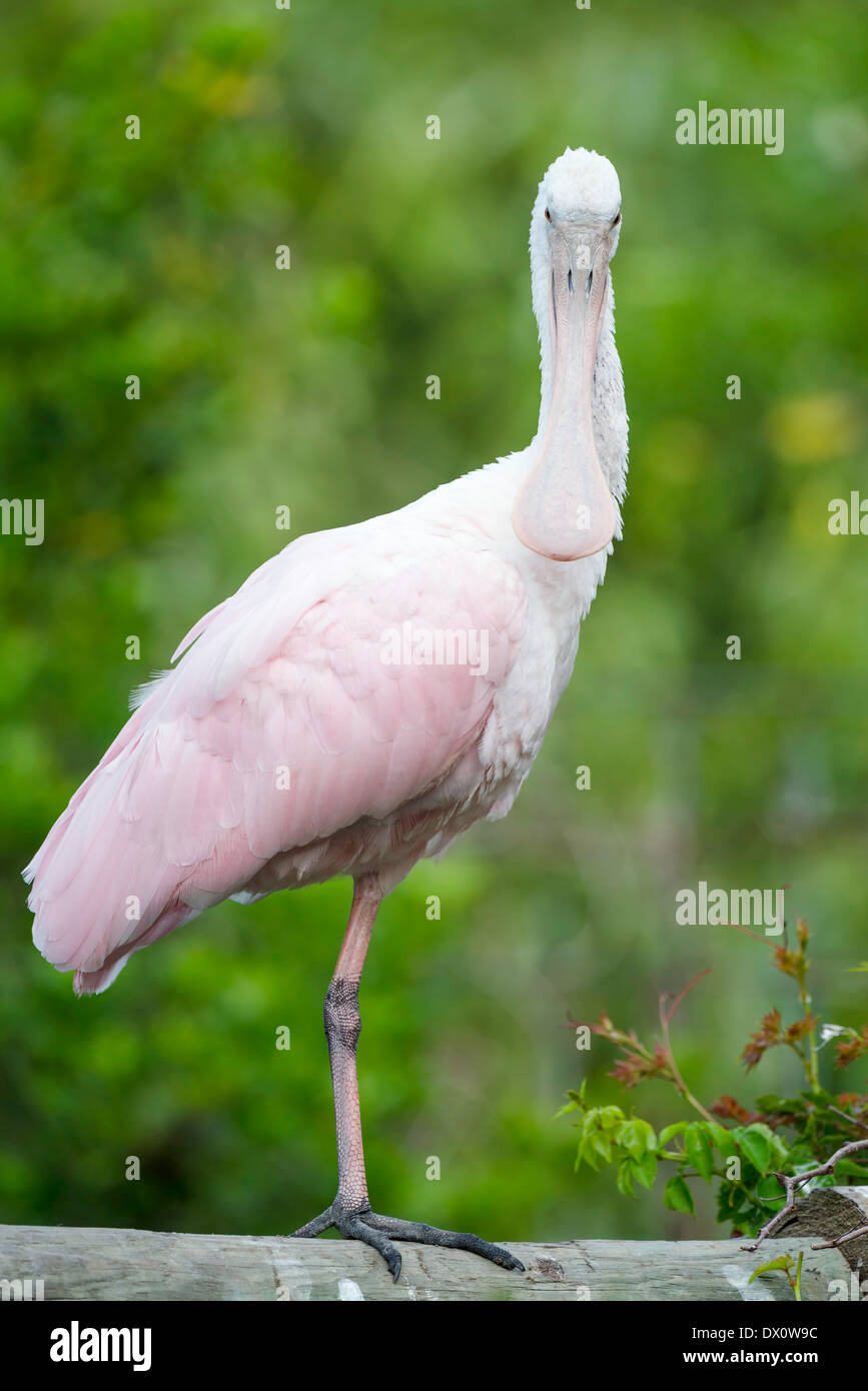 Juvenile Roseate Spoonbill Standing On Log Stock Photo Alamy