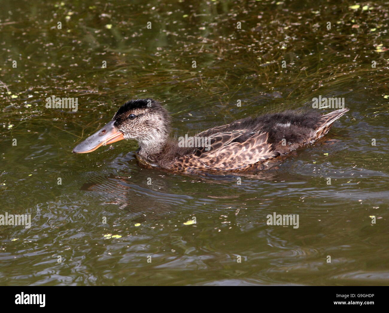 Juvenile Northern Shoveler Duck Anas Clypeata Swimming Stock