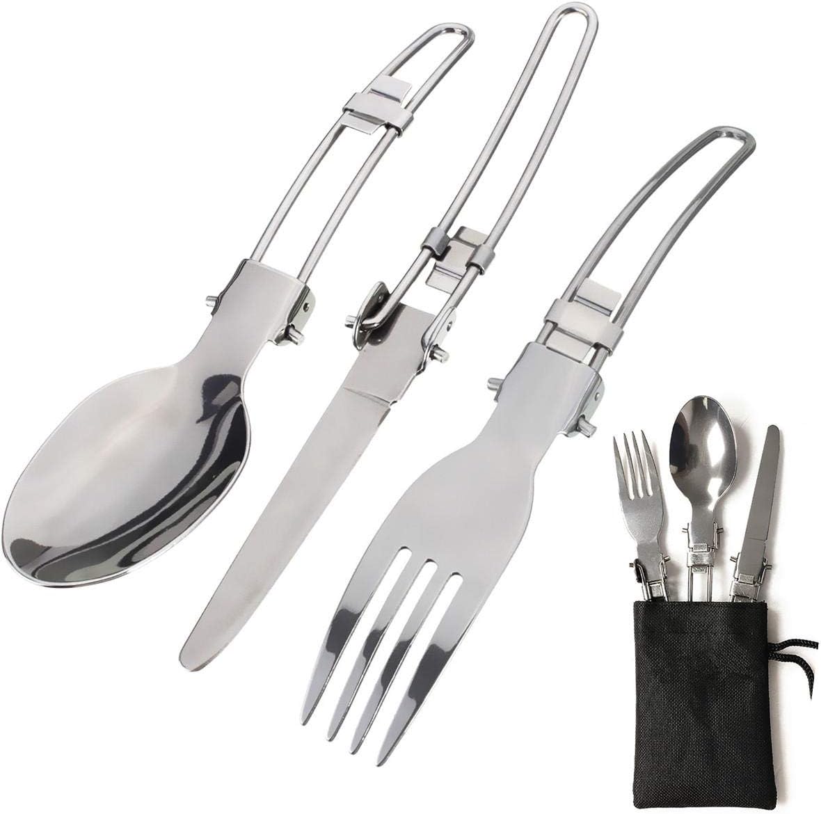Okil 3pcs Camping Bbq Hiking Picnic Folding Cutlery Set Knife Fork Spoon Utensil With A Bag Amazon Com
