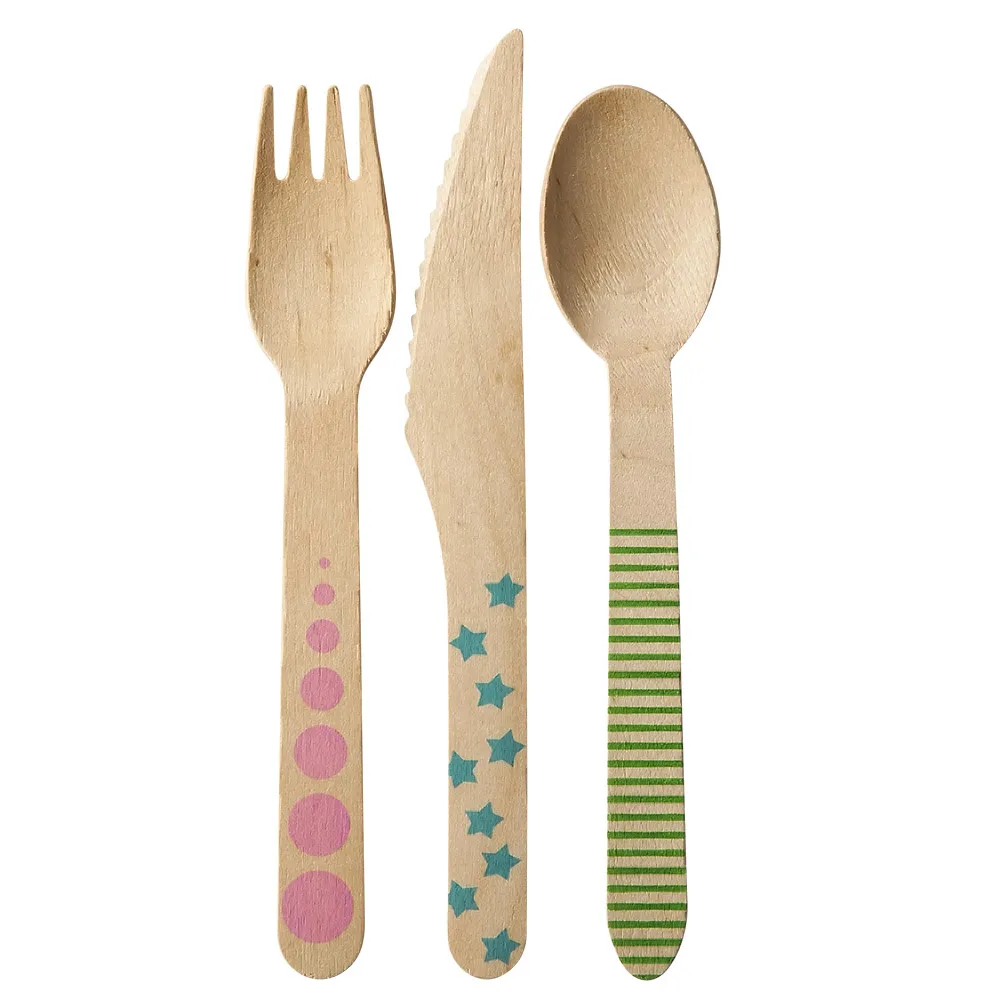 200 X Wooden Cutlery Knives Forks Spoons Disposable Biodegradable Party Bbq Eco Ebay