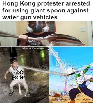 Hong Kong Protester Arrested For Using Giant Spoon Against Water