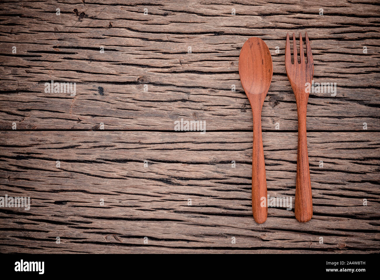 Fork And Spoon On Grunge Wood Food Background Concept Menu Design