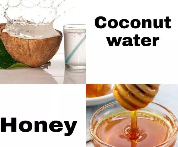 Add 1 Tablespoon Of Honey In A Glass Of Coconut Water Drink On An
