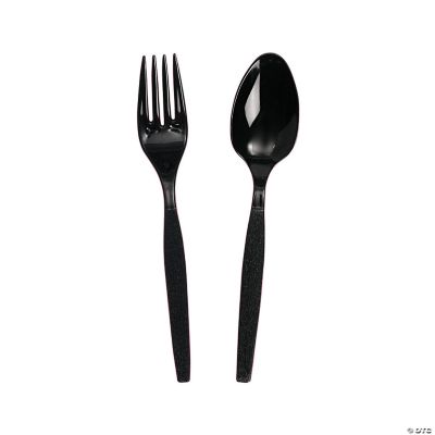 Black Plastic Fork Spoon Cutlery Set 16 Ct Oriental Trading