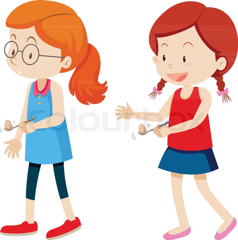 Girls And Egg Spoon Race Illustration Stock Vector Colourbox