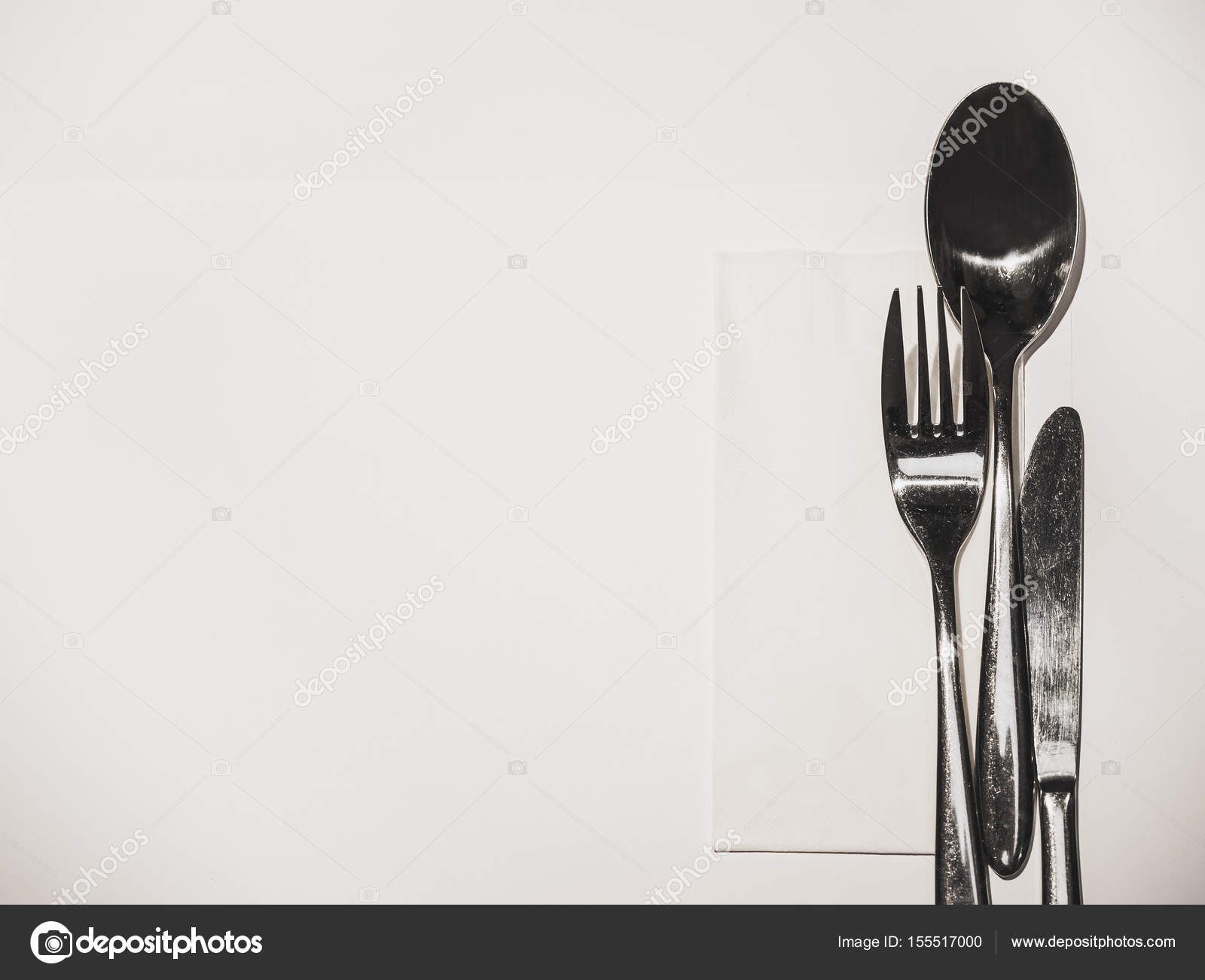 Fork Spoon Knife On White Menu Design Background Stock Photo