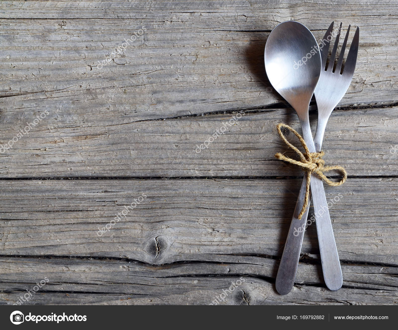 Cutlery Set Fork And Spoon On Rustic Wooden Table Cutlery On Old