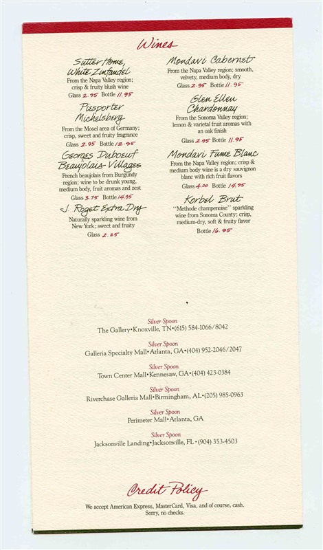 Silver Spoon Cafe Menu Knoxville Atlanta Jacksonville Birmingham