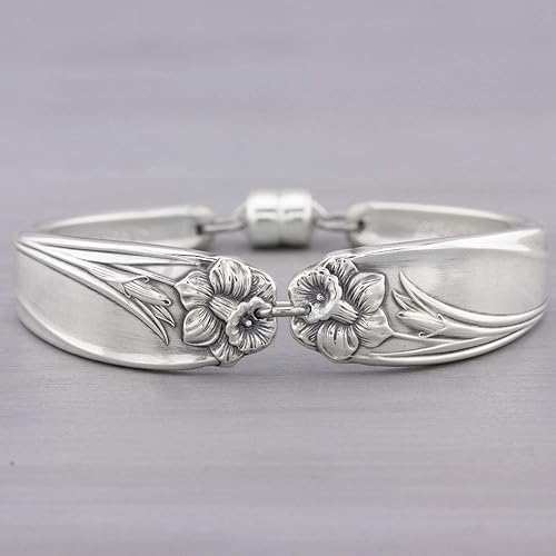 White Orchid Silver Spoon Jewelry Silverware Bracelet Available