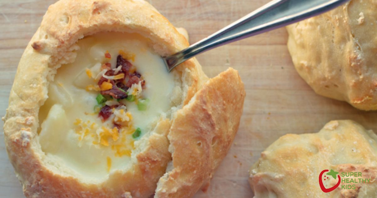 Loaded Baked Potato Soup Recipe In Bread Bowls Super Healthy Kids