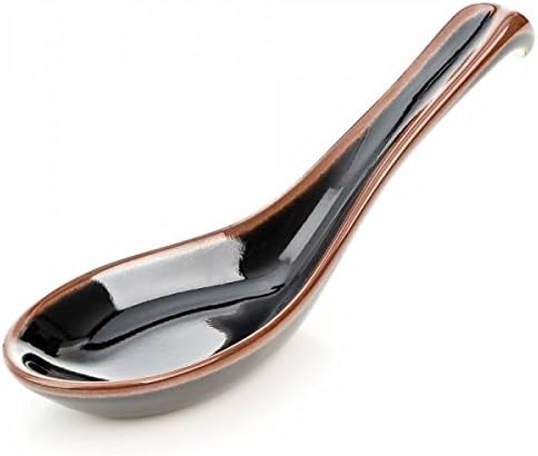 Amazon Com Japanese Porcelain Soup Spoons In Black With Brown