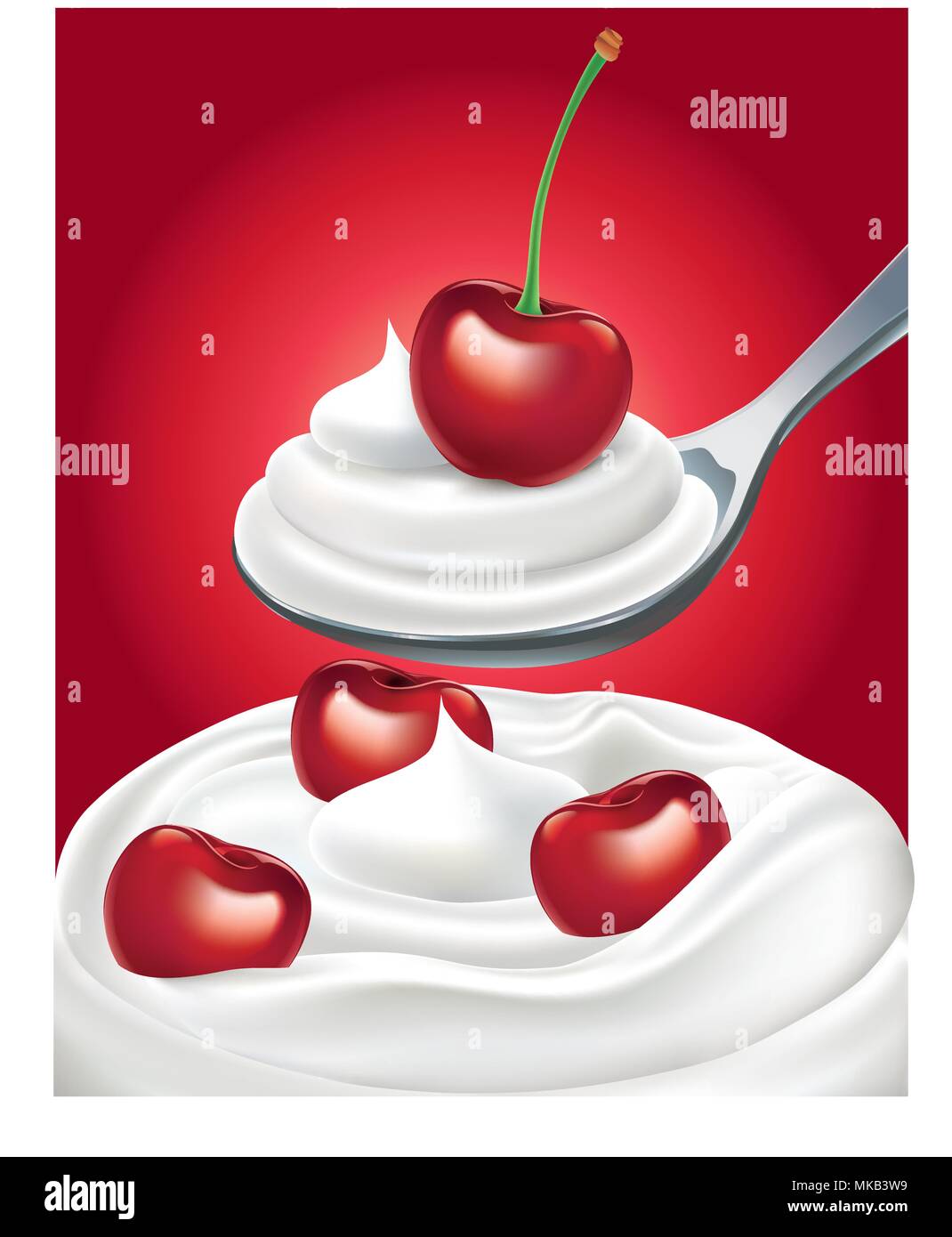 Yogurt Cream On Spoon With Fresh Cherry Stock Vector Image Art Alamy