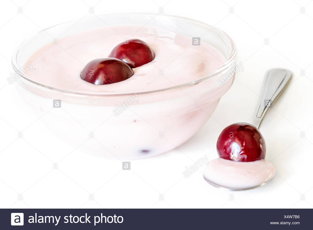 Glass Bowl With Cherries Yoghurt Spoon With Cherries And Yogurt Stock Photo Alamy