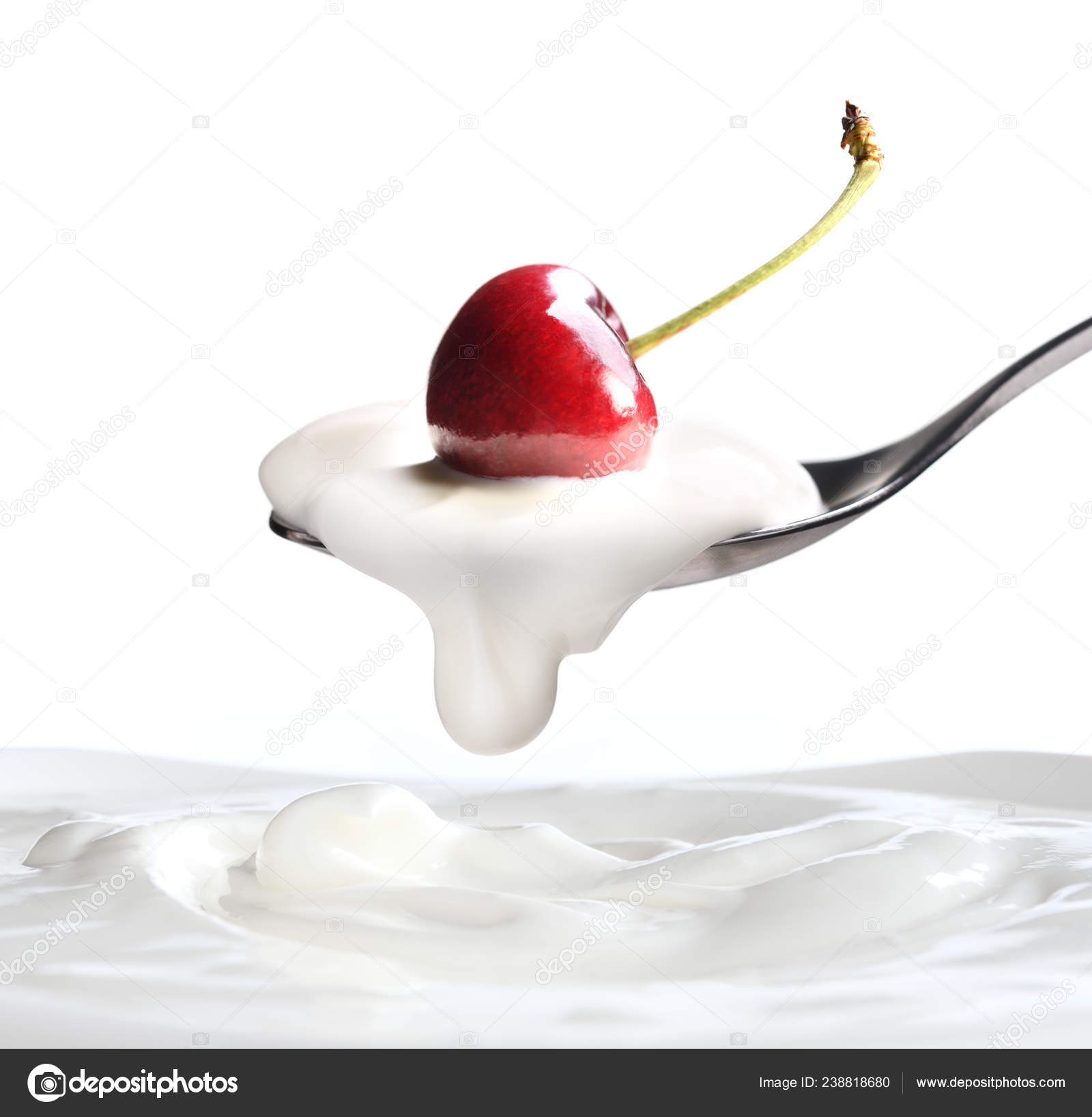 Plain Yogurt Spoon Fresh Cherry Top Hanging Plain Yogurt Isolated Stock Photo C Amenic181 238818680