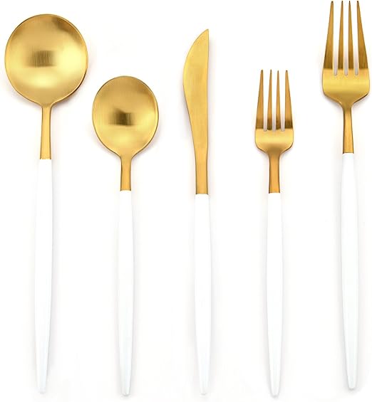 Amazon Com Deacory Flatware White And Matte Gold Silverware Set