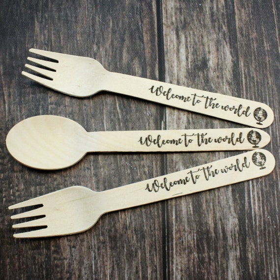 25 Travel Baby Shower Spoons Forks Knives Welcome To The Etsy