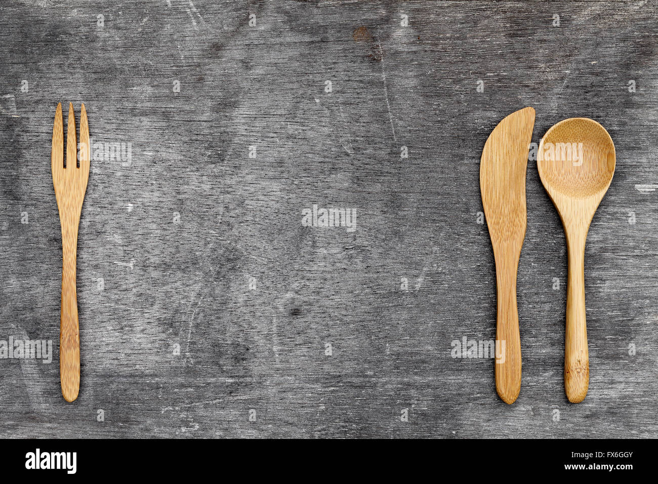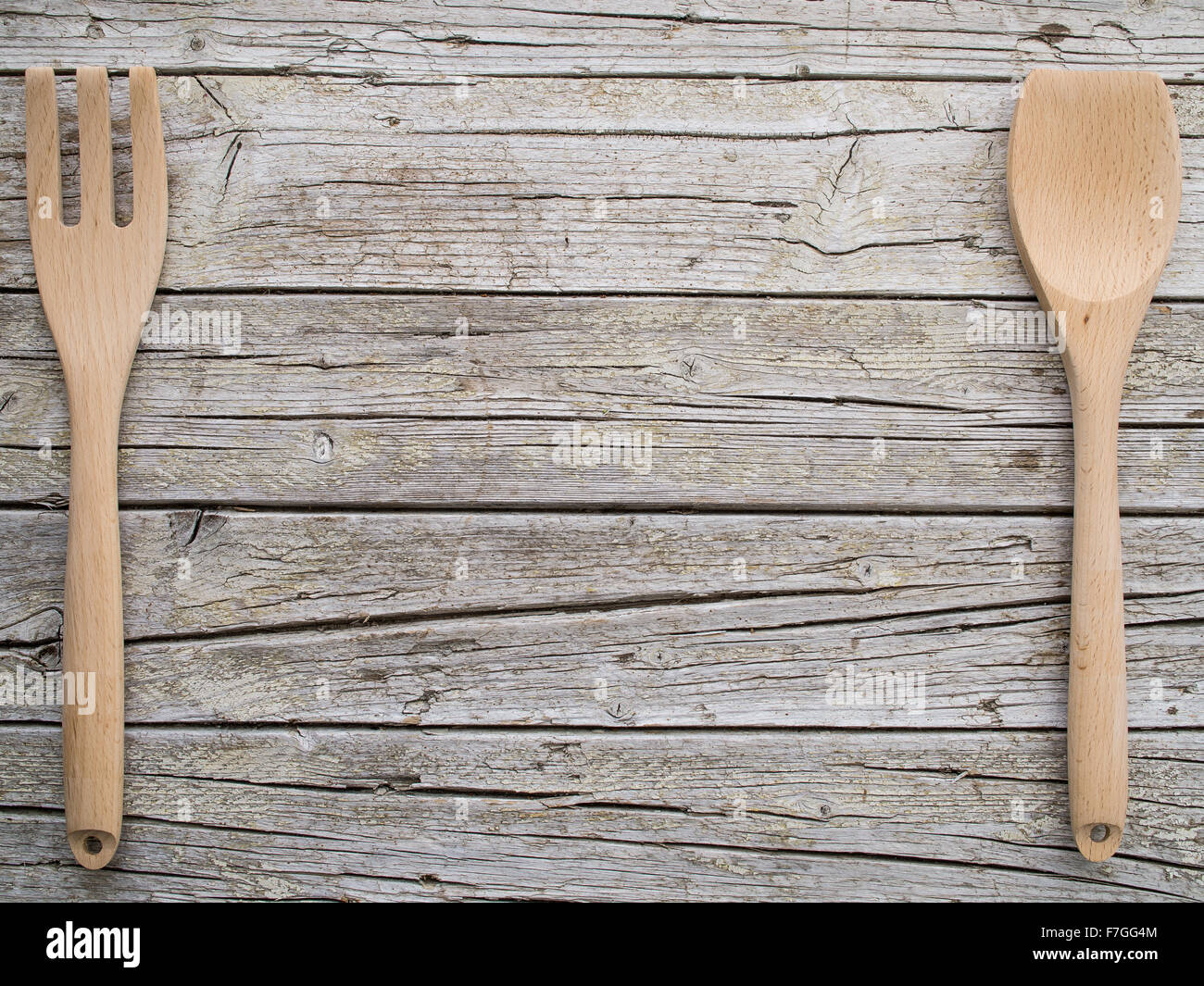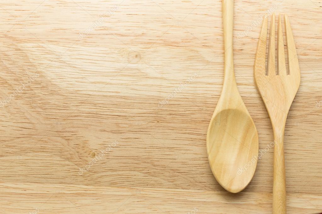 Wooden Spoon And Fork Knife On Grunge Wood Background Stock Photo