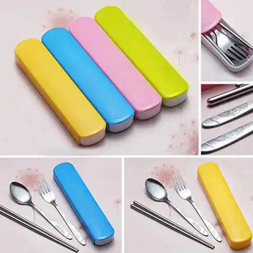 Kalaixing 3pcs Set Portable Stainless Steel Dinnerware Tableware