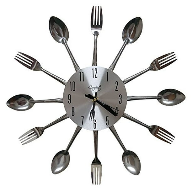 Amazon Com Modern Design Silver Cutlery Kitchen Utensil Clock