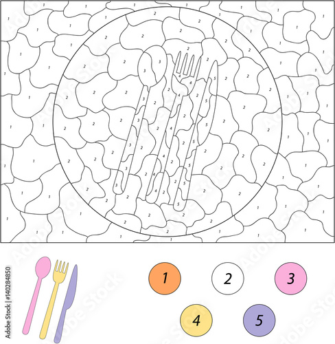Cartoon Spoon Fork Knife Color By Number Educational Game For