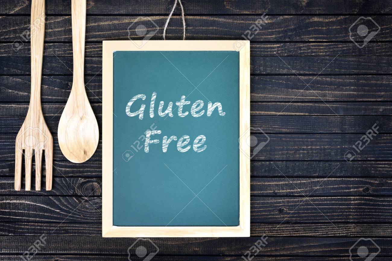 Gluten Free Text On Green Board With Fork And Spoon On Wooden