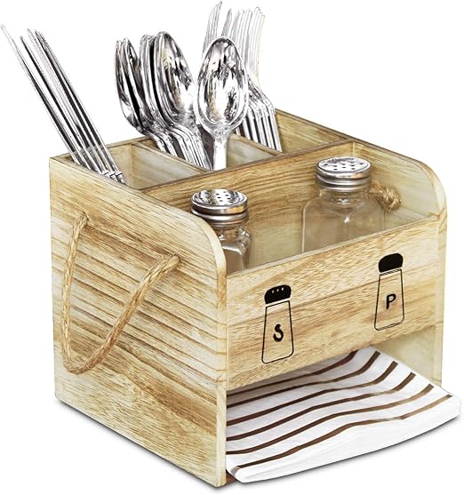 Amazon Com Ikee Design Wooden Utensil Caddy Flatware Holder With