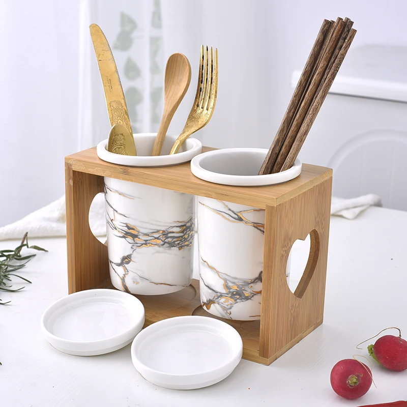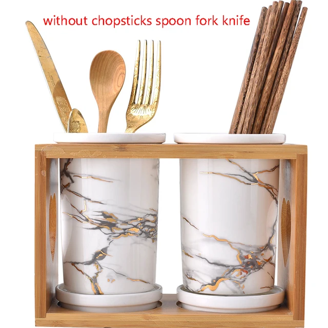 European Style Marble Pattern Ceramic Chopsticks Storage Knife