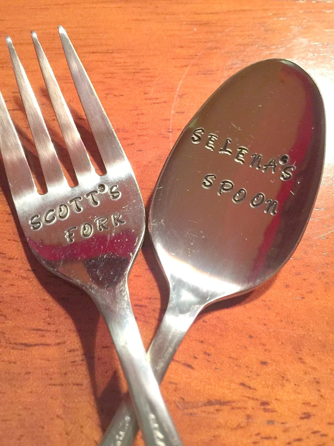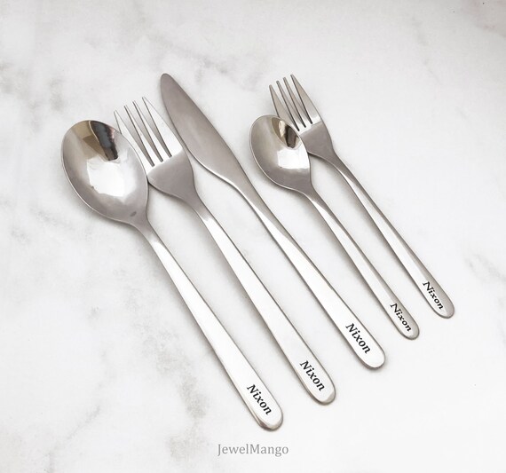 Amazon Com Custom Adult Fork Spoon Knife Add Your Own Custom Name Or Message Or Photo On Your Fork Knife Spoon Flatware Set Cutlery Sets By Yongcunusa 3pcs Flatware Sets